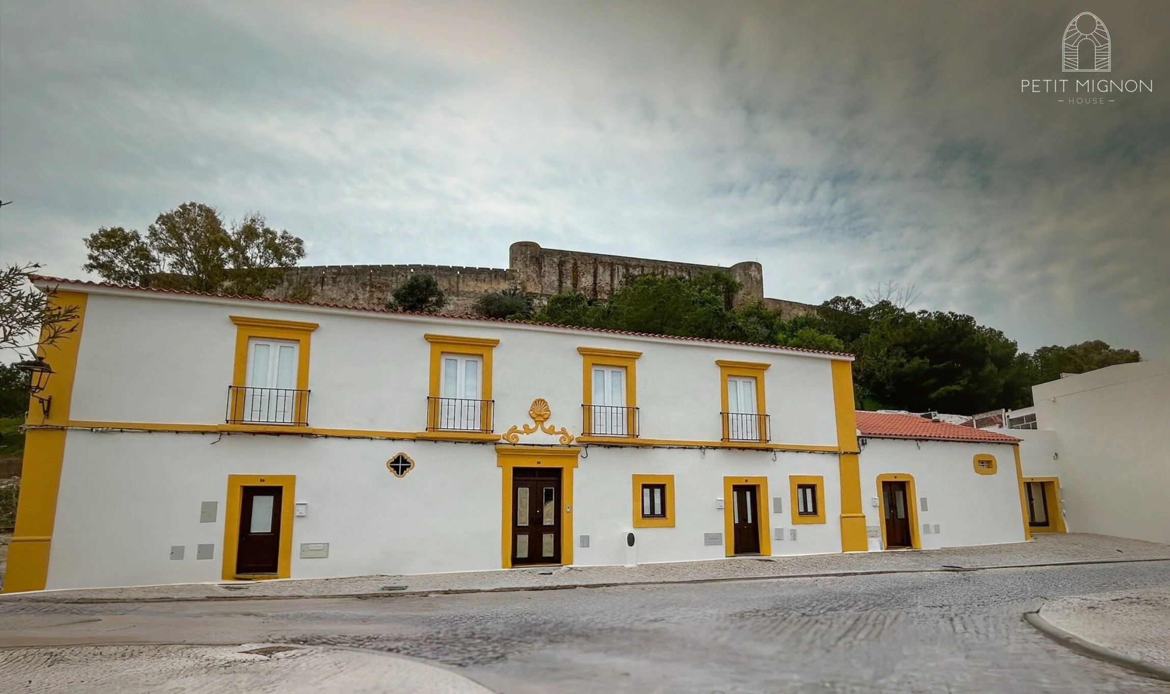 Entre paredes caiadas, telhados de telha laranja e o castelo mesmo ali ao lado, o apartamento convida a abrandar o ritmo e a viver o Algarve de forma serena, como se fosse “terra sua”.